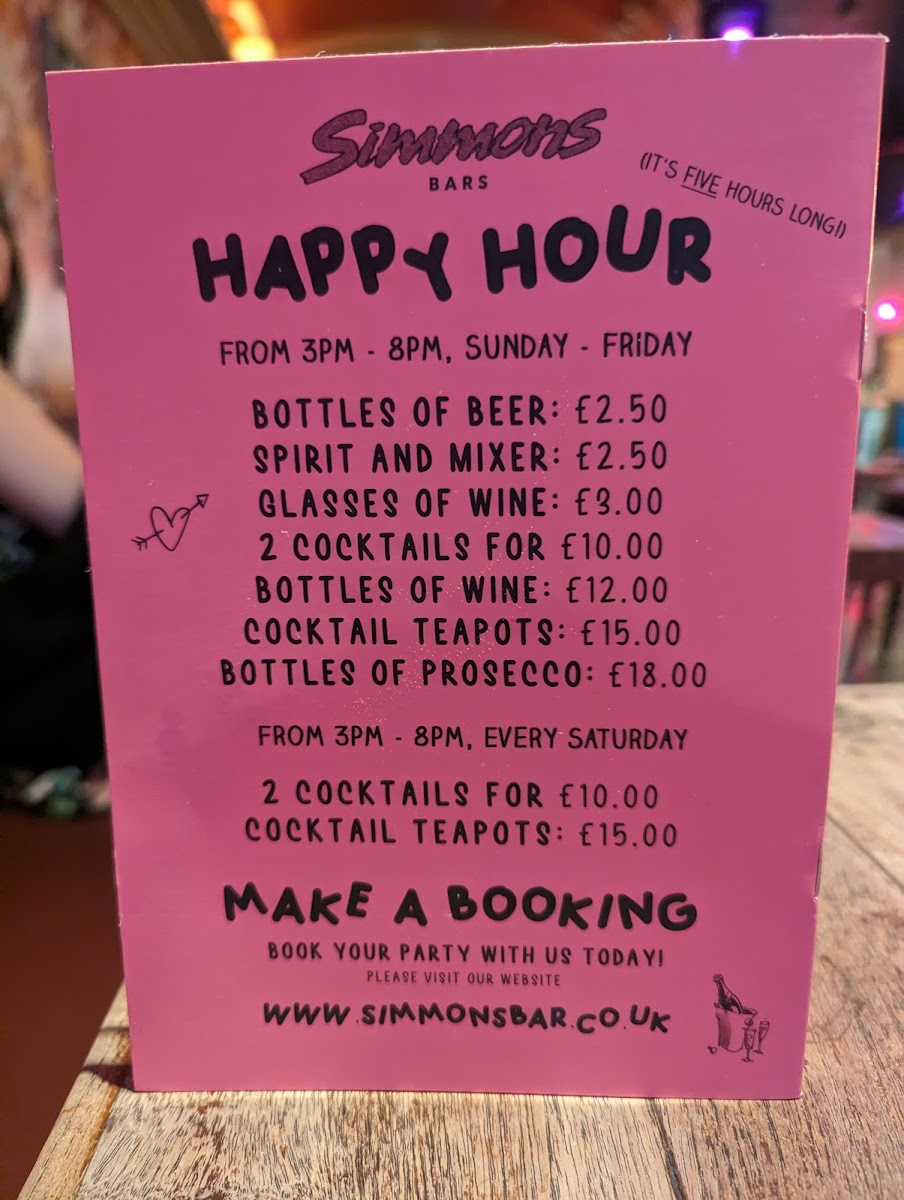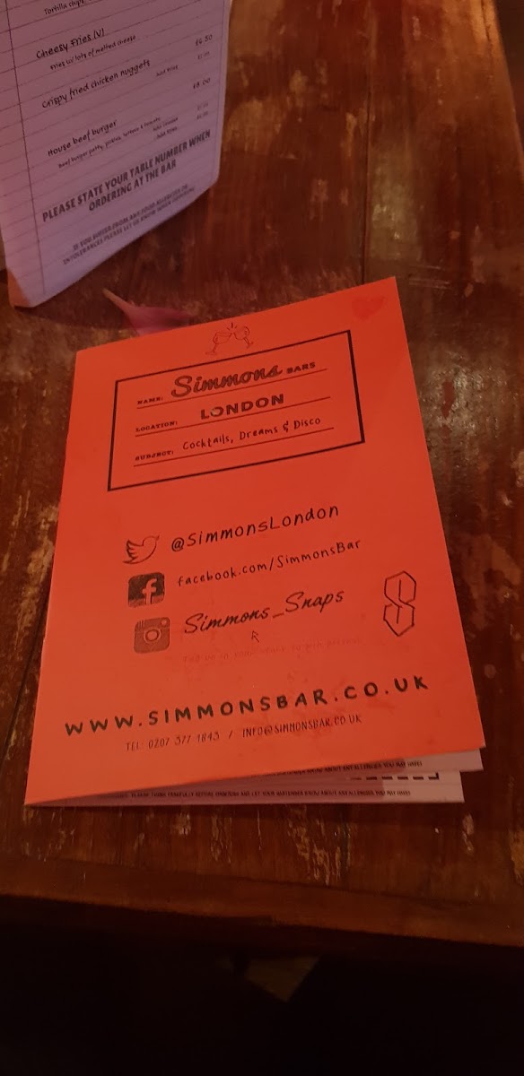 Simmons Bar Oxford Street Menu (2025 Update)